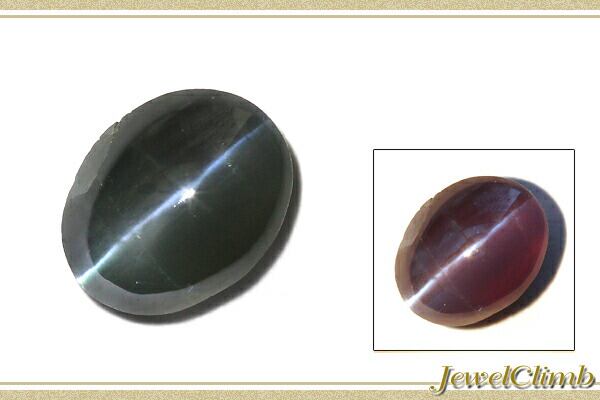 光を当てると、シャトヤンシーとカラーチェンジというふたつの特殊効果を同時に確認することができる、産出も非常に稀な希少石・アレキサンドライトキャッツアイ!
