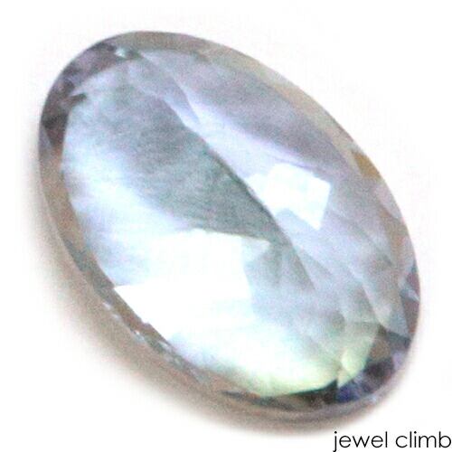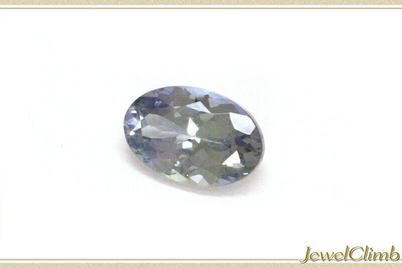バランスの良いオーバルカットの結晶は透明度が非常に高く、テーブル面からはミントブルーが、両端はバイオレットの色彩を放つタンザナイト特有の多色性もお楽しみいただける一石。