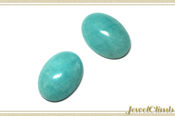 ◇宝石 アマゾナイト ◇重量 9.7CT前後(2石の合計) ◇形状 オーバルカボション ◇寸法 約14.0x10.0mm ◇産地 ブラジル ◇硬度 6.5 ◇品質 SI ◇色相 A ◇備考 画像はイメージとなります。同質の物をおと置け致します。 ◇『カラーストーンの品質と色相の表記について』