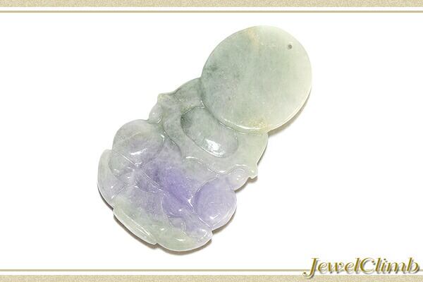 もともと翡翠とは白っぽい色なのですが、これにクロム成分が混入することによって緑色に見えます。そしてこの紫色はチタンが混入することによって独特の色合いを言われておりますが詳しいことはいまだ解明されておりません。