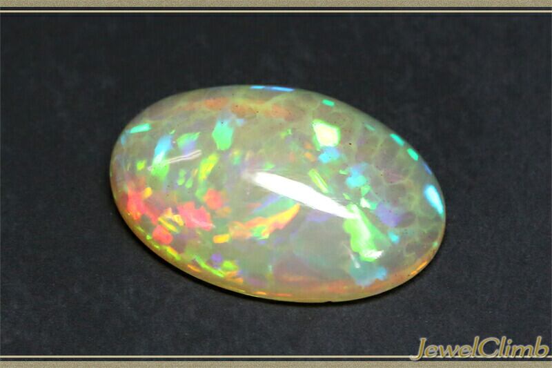 ネオングリーン、オレンジレッド、オレンジ、ブルーと虹色の遊色が次々と飛び出してくるスーダン産クリスタルオパール。