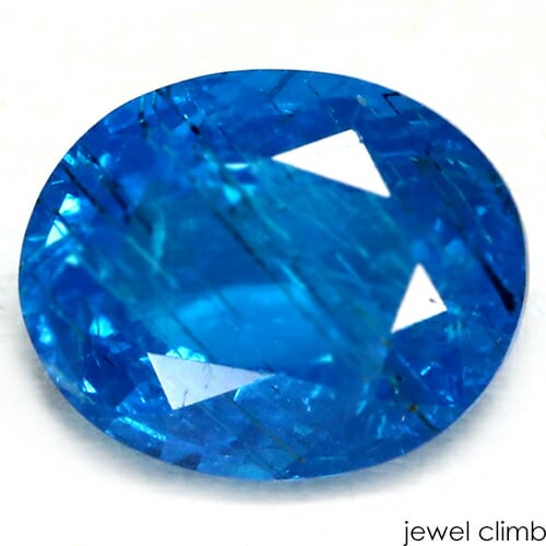 また、アパタイトは非常に多くの内包物が含まれる傾向があり特に、今回ご案内のようなネオンブルーカラーの結晶でカットストーンは非常に少ないものとなります。