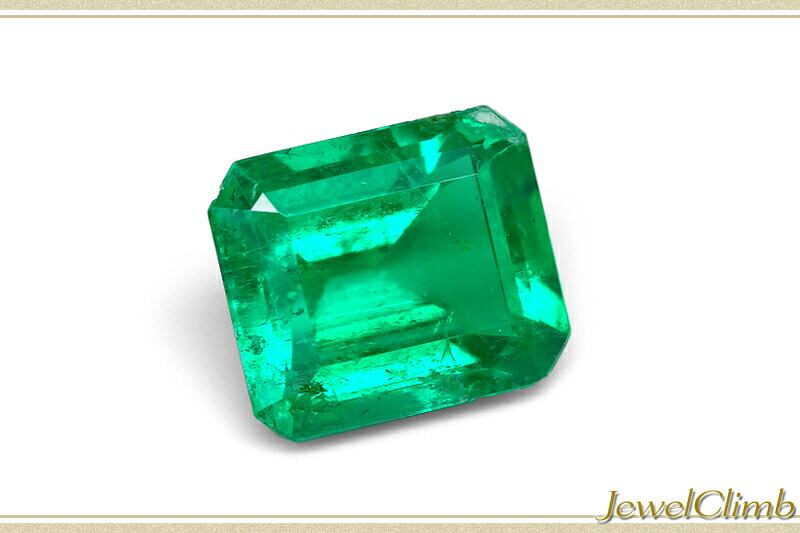 バランスの整ったステップカットが施された結晶から濃厚かつ鮮やかなエメラルドグリーンを輝かせるエメラルド。