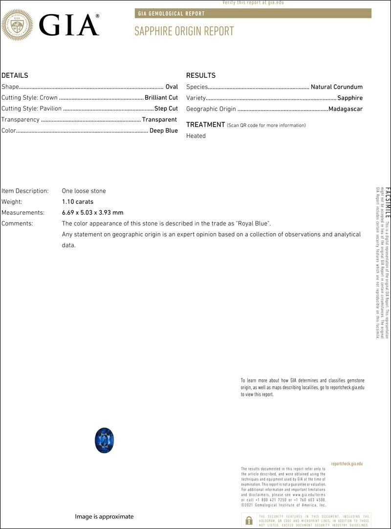 ロイヤルブルー明記が入ったGIAレポートと共にお届けさせていただきます。