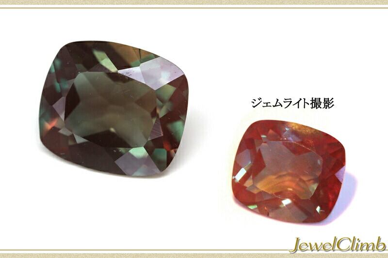 アンデシンというとサンストーンに近い宝石として灼熱の炎を連想させる赤色が一般的に常識となっておりますが、この宝石はその常識を覆すアンデシンで、地色が一般的なアンデシンとは違い赤色ではなく緑色となっており、光をあてると神秘的な赤色にカラーチェンジする希少なアンデシンです。