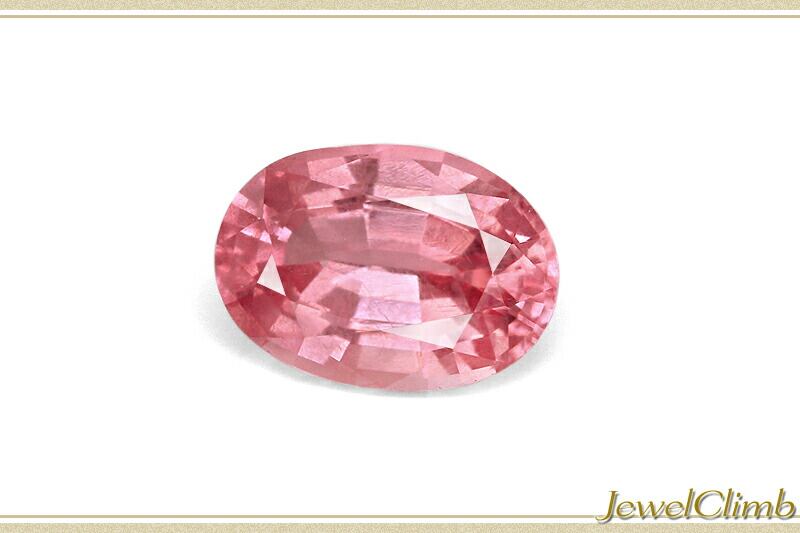 上品なオーバル結晶に仕上げられピンクにオレンジが混ざり合ったような絶妙なパパラチャカラーに目を奪われます。