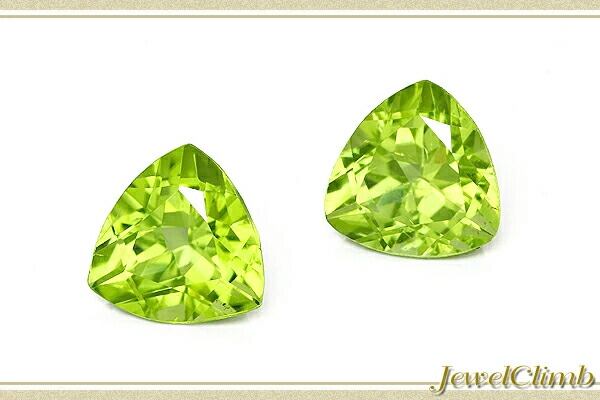 明るいグリーンの彩りが美しく、クリアーな結晶から明るい煌きが魅力的なペリドットのペアストーン!
