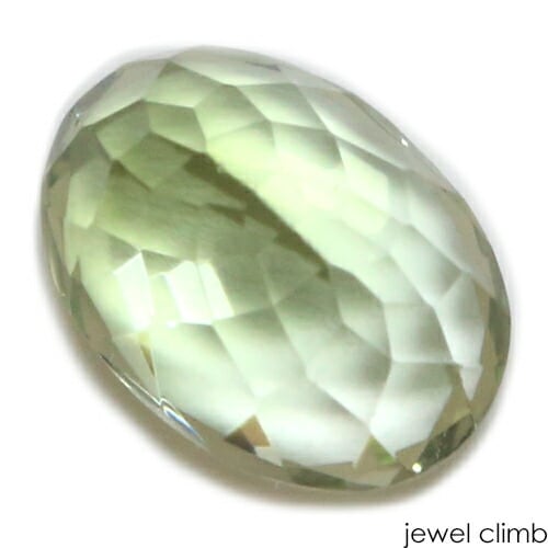 内包物等は肉眼でもわからないレベルの透明度を持つこちらの結晶に彩る優しいグリーン。