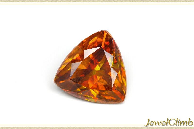 市場に少ないトリリアントカットが施された一石はしっかりとしたオレンジカラーが印象に残ります。