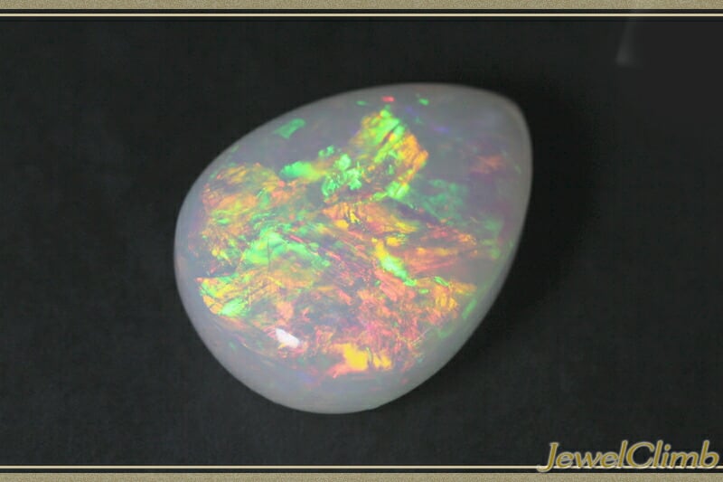 ふっくらしたペアシェイプカボションに丁寧に磨かれ光沢感ある表情が美しいクリスタルオパール。