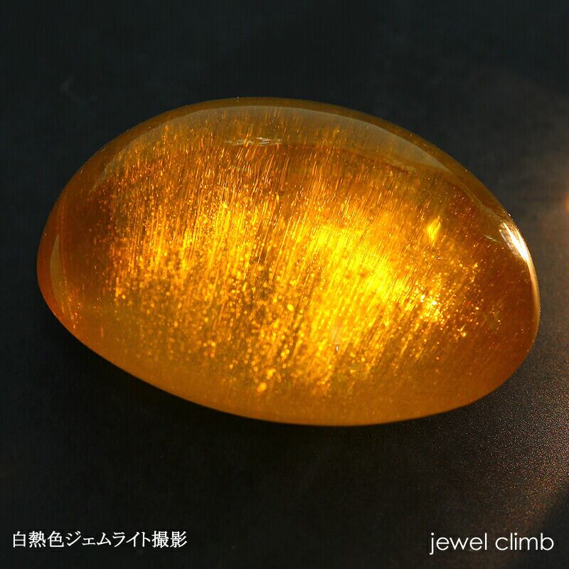 ハニーゴールドの彩りが美しい艶々したカボションカットのベリル結晶。