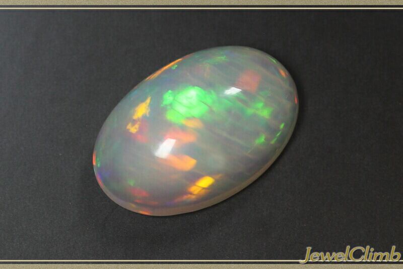 カボションカット特有の艶めいたボディにマルチカラーの遊色が力強くアピールされる非常に美しいクリスタルオパールです。
