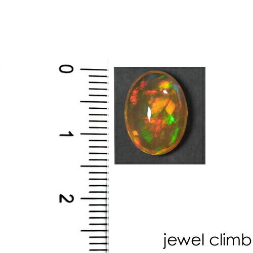 艶々したふっくら高さのあるオーバルカボションに磨き上げられ4CTを凝るボリュームのある結晶内で遊色が神秘的に折り重なる美しさ。