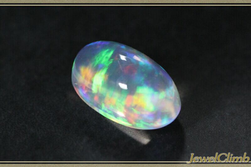 高い透明度を誇るクリアーなカボション結晶ふっくらとした高さのあるカボションカットを施され虹色の遊色が浮かび上がるウォーターオパール!