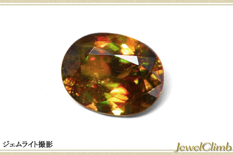 海外ではカラーチェンジスフェーンとも呼ばれており特定の環境下で赤色のファイアの輝きを見せるレアな一石です。