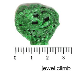 両面に施された手の込んだ彫刻と濃いグリーンが美しい本翡翠のカービングです!/宝石 本翡翠カービング /重量 58.98CT /形状 カービング/寸法 27.0x26.0x13.2mm/産地 ミャンマー /硬度 6.5〜7/品質 −−/色相 −−