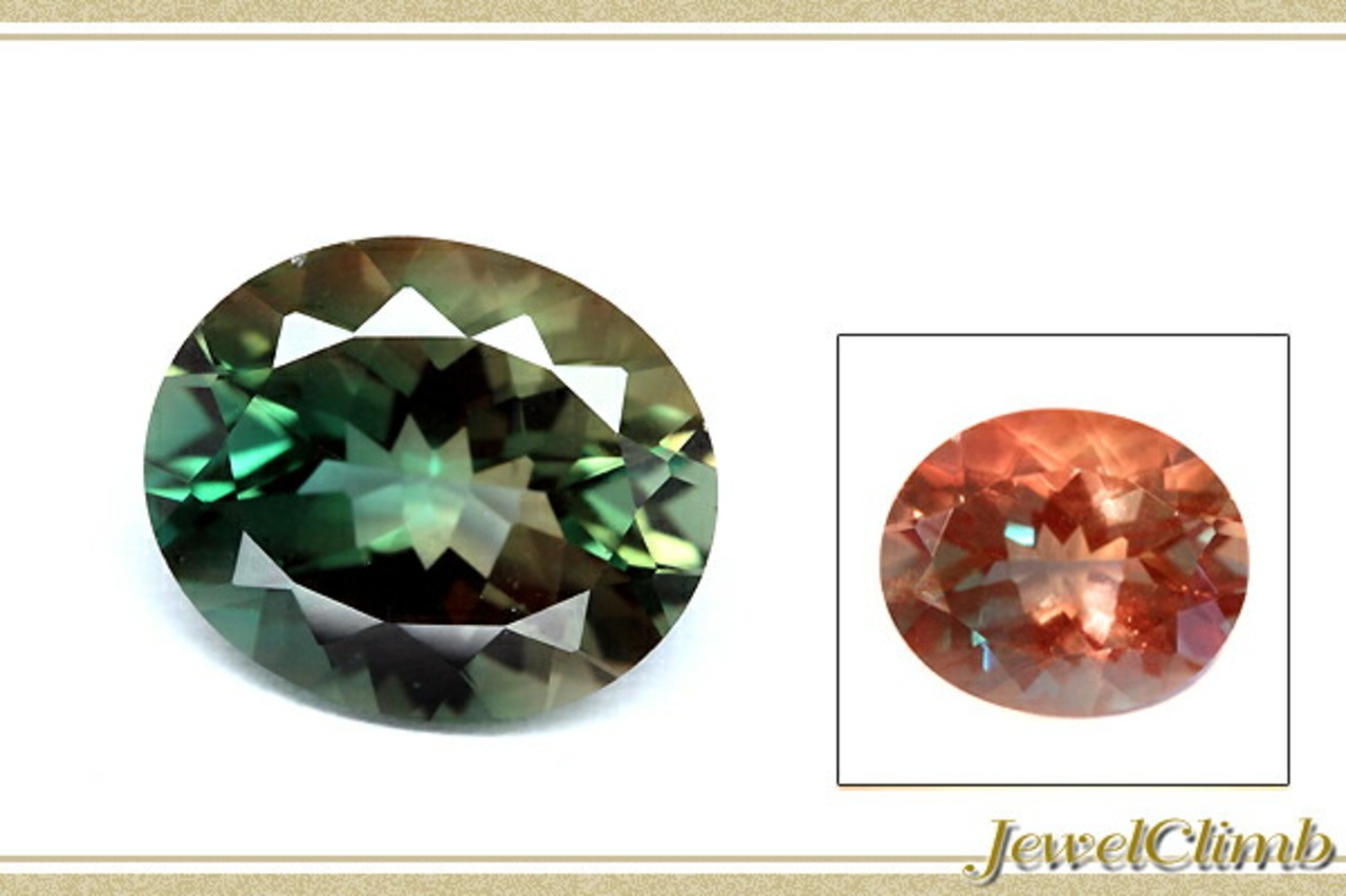 この宝石はその常識を覆すアンデシンで、地色が一般的なアンデシンとは違い赤色ではなく緑色となっておりペンライト等の光をあてると神秘的な赤色にカラーチェンジする希少なアンデシンです。