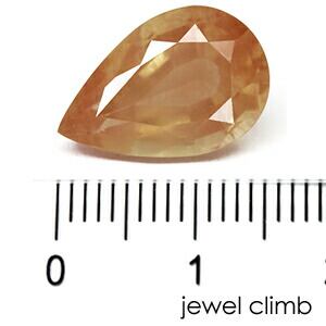 整ったペアシェイプカットを施され結晶の先端とカーブラインはやや色が濃く感じられます。