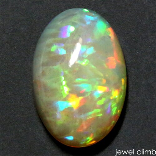 ネオングリーン、オレンジレッド、オレンジ、ブルーと虹色の遊色が次々と飛び出してくるスーダン産クリスタルオパール。