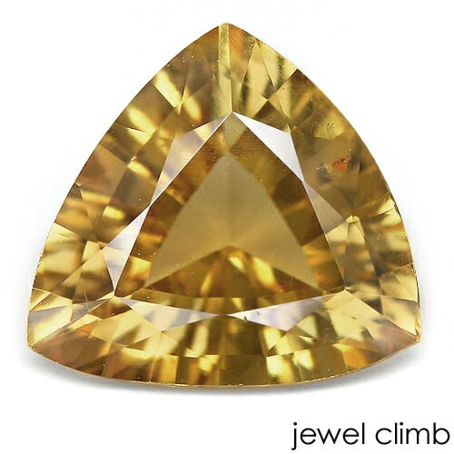 上品なイエローの輝きが印象的な希少石シンハライトです。