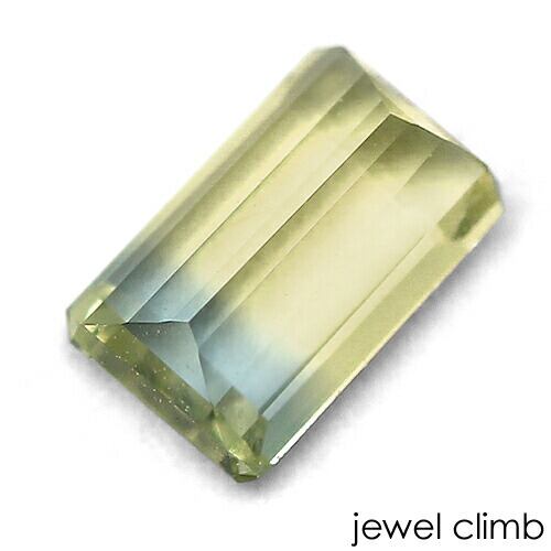 ステップカットの見栄えの良い結晶を、グリーニッシュブルーカラーとイエローカラーの彩りをセパレートしているストーンです。