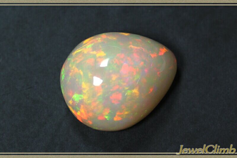 オレンジをメインに揺らめく遊色は鮮明で少し結晶を傾けただけで、色彩が一面に広がる一石。