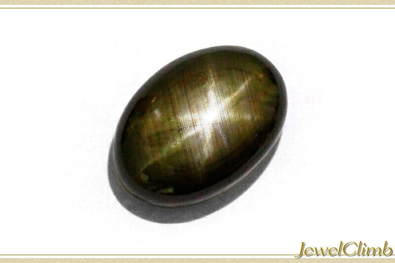この神秘的なブラックサファイアのアステリズムは、シルクインクルージョンによるものではなく、ヘマタイト(酸化鉄)の含有によるラメラー構造による光の効果によるものです。
